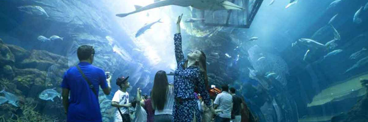 Meet the wonderful creatures in an underwater world at Dubai Aquarium. It is one of the best tourist places in Dubai that houses 140 species of aquatic animals. It starts from the ground floor and stretches to the third floor of the Dubai Mall. Next to the aquarium is an underwater zoo that offers an exquisite view of underwater life. Take a glass-bottom boat tour, go shark diving, and get wet in a snorkeling cage to have fun at this amazing place.