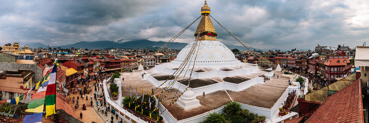 The Bodhanath Stupa, just outside Kathmandu, is one of the largest stupas of its kind in the world and dates to some time around the 6th century, possibly even earlier. Like Bhaktapur, it lies on the old trade route to Tibet and is a UNESCO World Heritage Site. The stupa itself is a symbol of enlightenment but at Boudhanath the symbolism is particularly clear. Each different shape represents one of the five elements, earth, water, fire, air, and sphere, which are also the attributes of the five Buddhas. Brought together in the form of the stupa, their unity reflects in abstract fashion the structure of the universe itself. The stupa sustained minor damage during the 2015 earthquake and is now fully repaired.