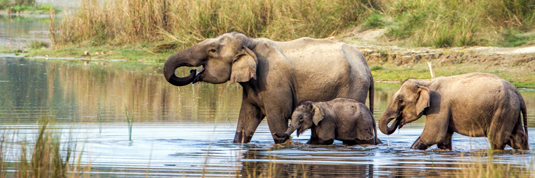 Travelers come here to see wildlife. The park is home to rhinos, Bengal tigers, leopards, sloth bears, gaur (buffalo), deer, and many other critters. Freshwater dolphins (gangetic) and crocodiles inhabit the rivers and streams but are rarely seen. More than 500 species of birds make Chitwan a paradise for ornithologists. Tours from the lodges take you out into the park, either on foot, or more often, on elephants for close-up views of the animals. The best time to visit Chitwan is from October to February. Average temperatures hover around 25 degrees Celsius (77 degrees Fahrenheit), with high humidity, although the mornings can be quite cool. June to September is the monsoon season, with frequent and heavy rain.
